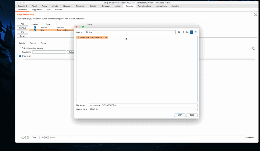 同时我们修改 BurpExtender的代码,让插件可以在Burpsuite上新增标签页: