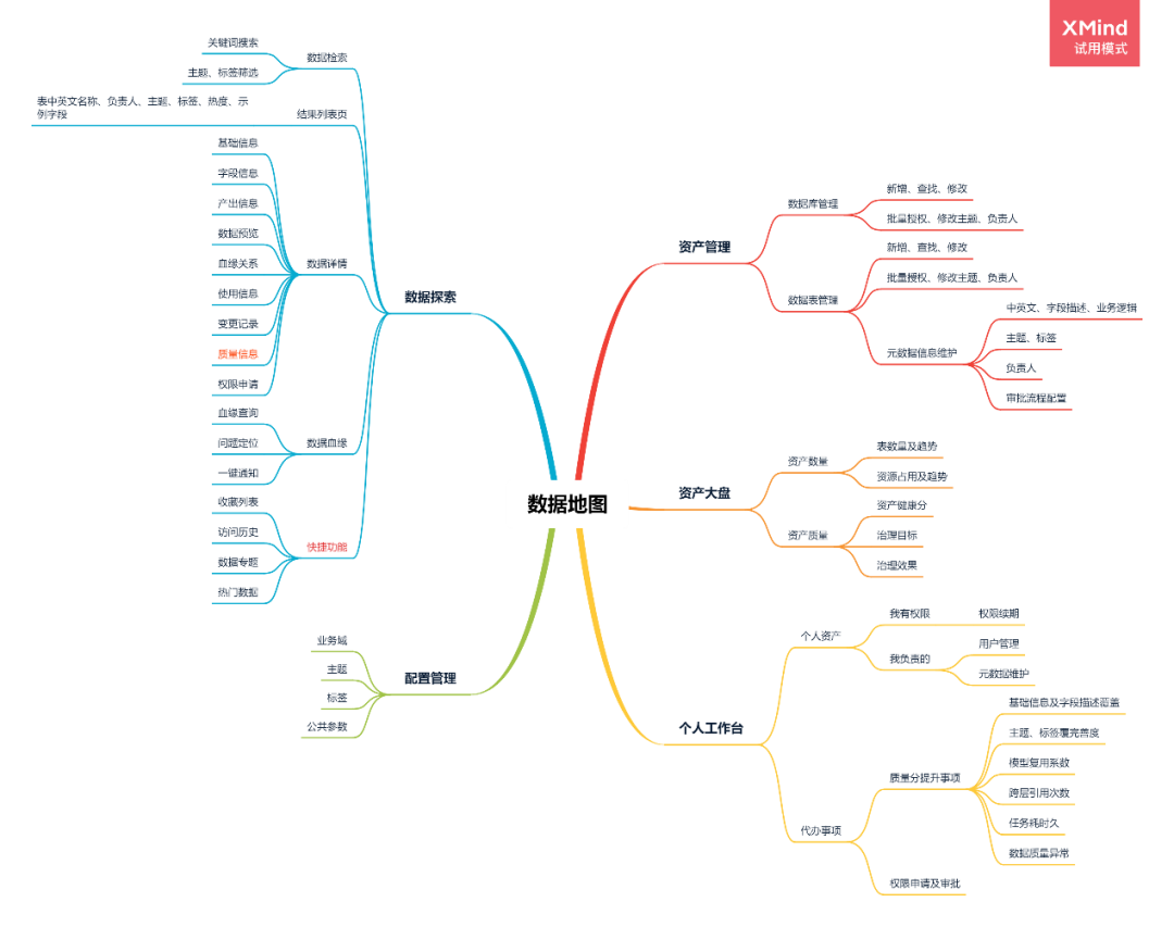 资产管理主要是面向资产创建者,对所负责的资产进行业务元数据、技术元数据的维护及配置,对资产健康度负责。数据地图需要的功能包括: