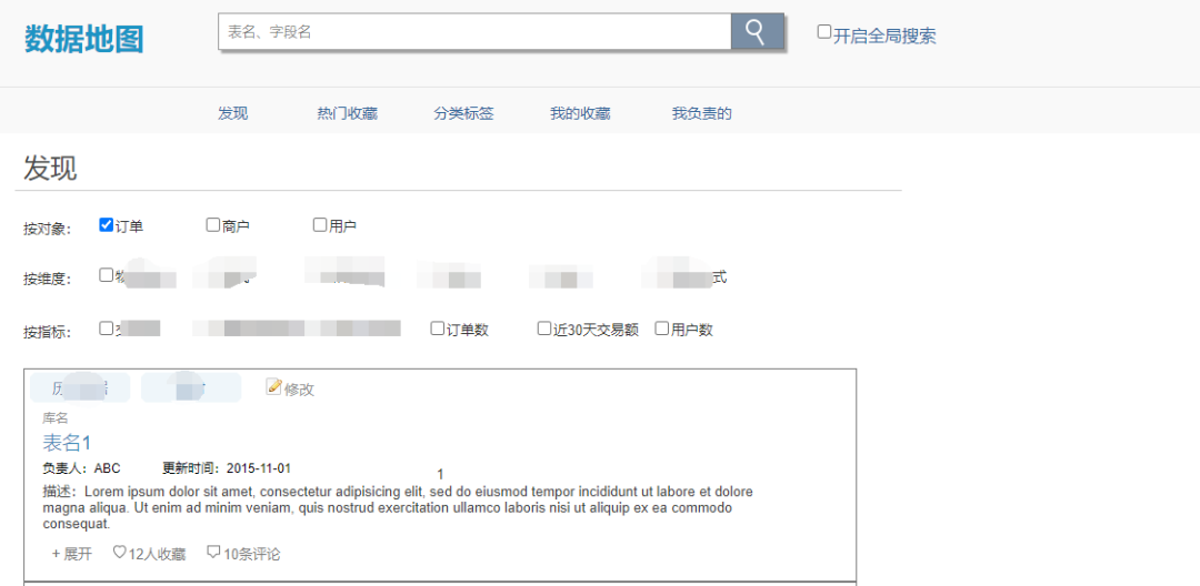 资产分级分类,提供简单易用的资产“地图”导航,快速找到目标表