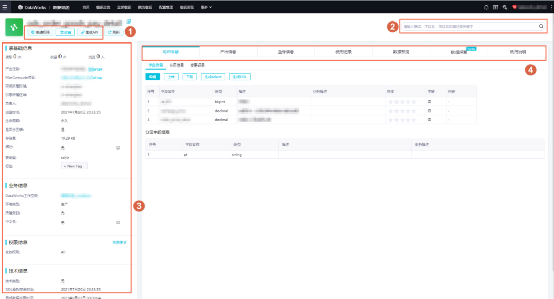 基本信息:如表中英文名称、负责人、业务描述、字段中英文、分区字段、字段处理逻辑、业务域、主题、标签层级