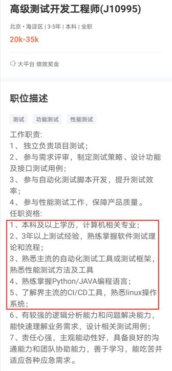 这些公司的岗位设置基本分为:前端、运维、算法工程师等等,薪资从15~40K 不等,列出一个斗鱼直播高级测试开发工程师的岗位职责要求。