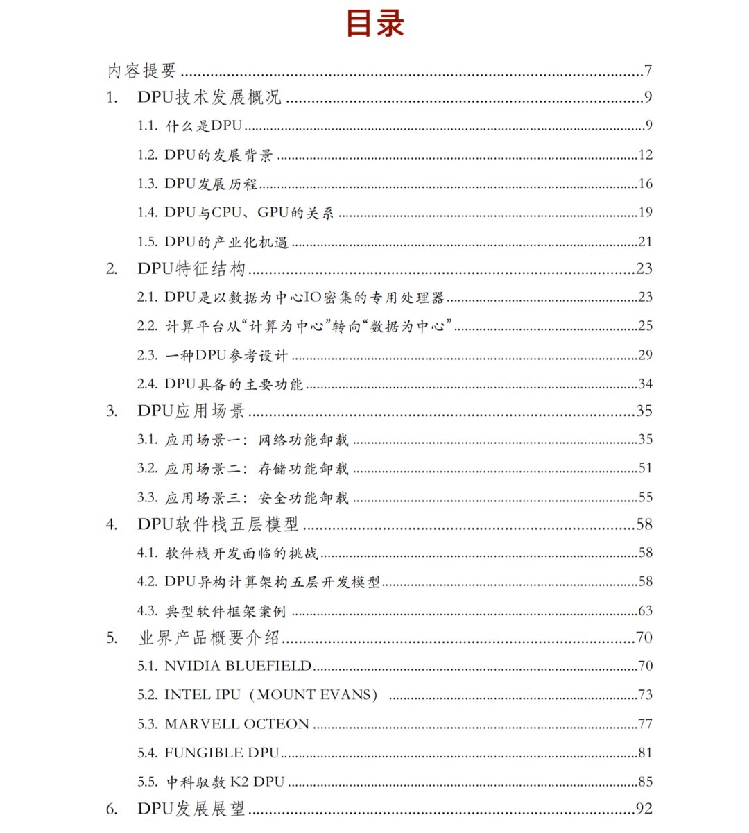 专用数据处理器 (DPU)技术白皮书(中国科学院计算技术研究所,鄢贵海等)重点分析DPU产生的背景、技术特征、软硬件参考架构,应用场景、并对目前已经公布的DPU产品做简要的比较分析,为后续DPU技术发展提供必要的参考。