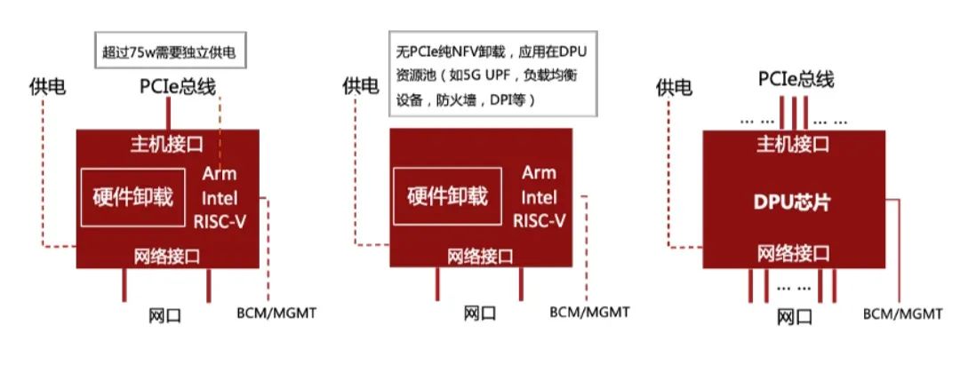 随着越来越多的功能加入到智能网卡中,其功率将很难限制在75W之内,这样就需要独立的供电系统。所以,未来的智能网卡形态可能有三种形态: