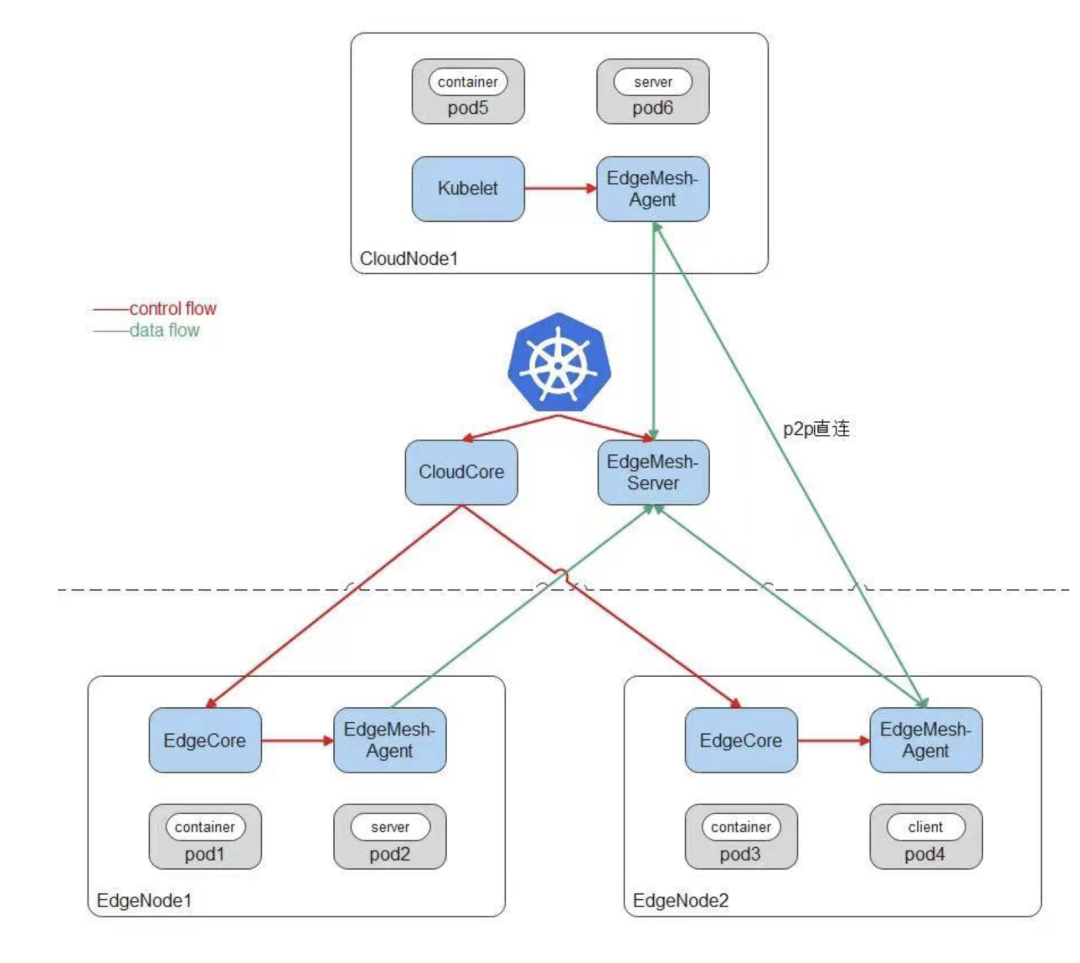 EdgeMesh包含两个组件:EdgeMesh-Server和每个节点上的EdgeMesh-Agent。