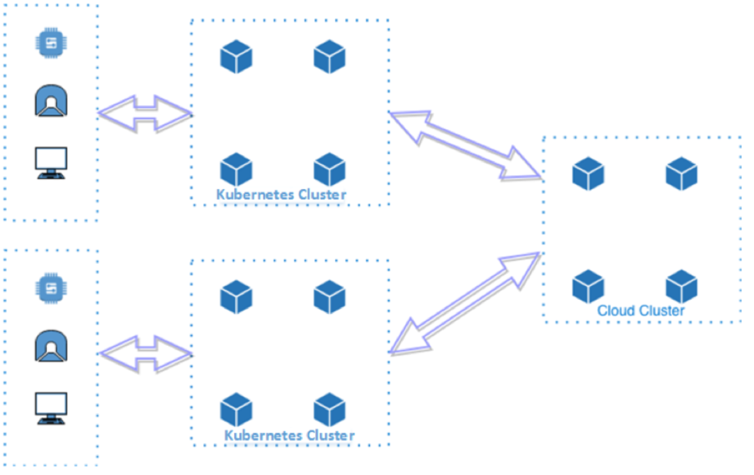 边缘计算平台,旨在将边缘端靠近数据源的计算单元纳入到中心云,实现集中管理,将云服务部署其上,及时响应终端请求。然而,成千上万的边缘节点散布于各地,例如银行网点、车载节点、加油站等基于一些边缘设备管理场景,服务器分散在不同城市,无法统一管理,为了优化集群部署以及统一管理,特探索边缘计算场景方案。