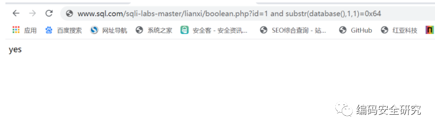substr是截取的意思,构造语句的含义是,截取database()的值,从第一个开始,每次返回一个。这里要注意,要和limit语句区分开,limit从0开始排序,substr从1开始排序。因为我知道数据库的第一个字母是d,所以直接换成d,转换成16进制就是0x64。结果如下。