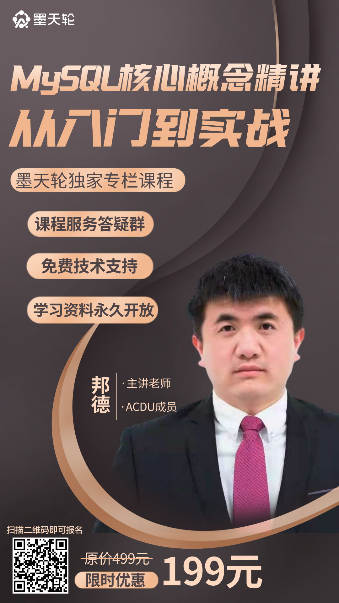 为了帮助大家真正搞懂MySQL,在面试和实战中避坑,我们邀请到中国DBA联盟(ACDU)成员——IT邦德老师为大家带来《MySQL核心精讲-从入门到实战》的系列课程。