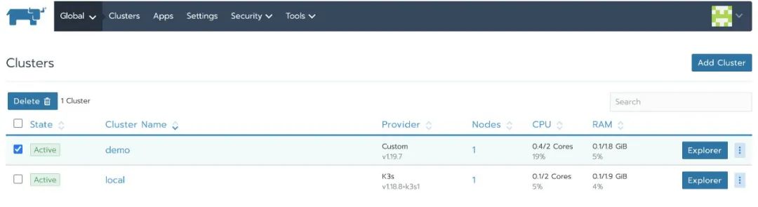 假设你已经搭建了一个单节点的 Rancher,并且创建了一个下游业务集群: