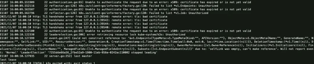 并且Rancher 容器由于内置的K3s证书过期而不断重启。
