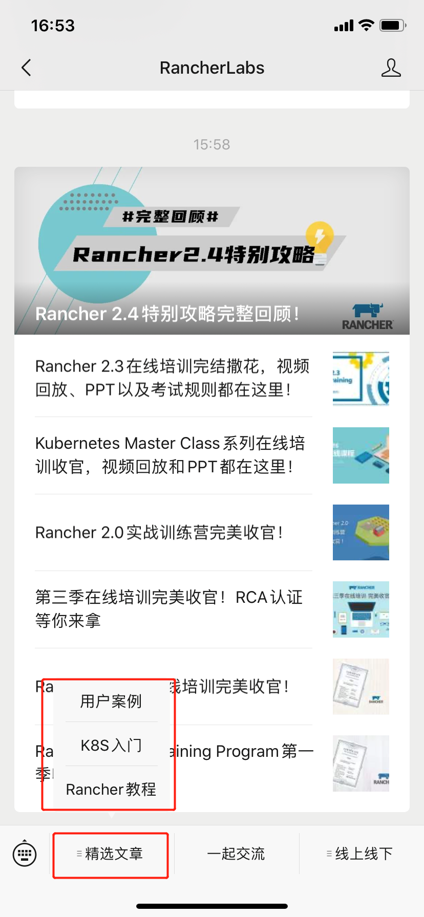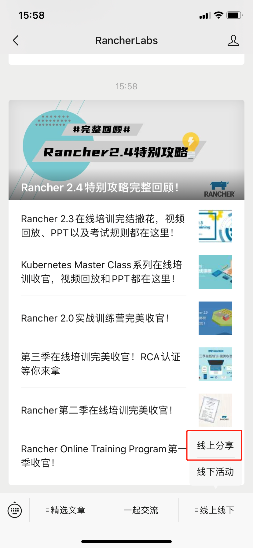 路径:RancherLabs公众号菜单栏【线上线下】-【线上分享】