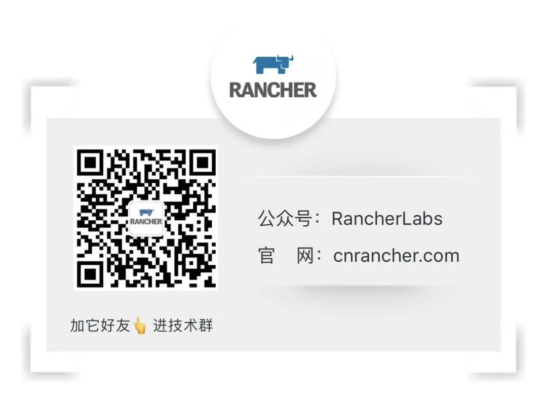 目前Rancher官方交流群已经达到20个,社群人数超万人,每天都有成百上千的小伙伴在社群中更加了解Rancher。如果你还没有加入技术交流群,欢迎扫描下方二维码,添加小助手为好友并备注「姓名-公司-城市」,即可加入Rancher官方微信群。