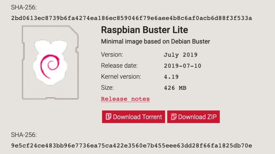 通过上面的链接下载你选择的ISO,我下载的是Raspbian Buster Lite: