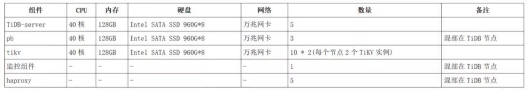 关于存储官方推荐采用 NVME SSD,这样能最大发挥 TiKV 的 IO 能力 。目前由于某些原因,暂时退而求其次采用 SATA SSD,通过把磁盘分成 2 组 TiKV 数据盘,每一组 3 块盘做 RAID0,最后剩余 2 块盘做 RAID1 作为系统盘,将磁盘 IO 能力提升。然后每组数据磁盘上部署一个 TiKV 节点。TiDB 的部署采用官网推荐的 TiDB Ansible 部署方式,这里不再赘述,大家可以去 PingCAP 官网查看。