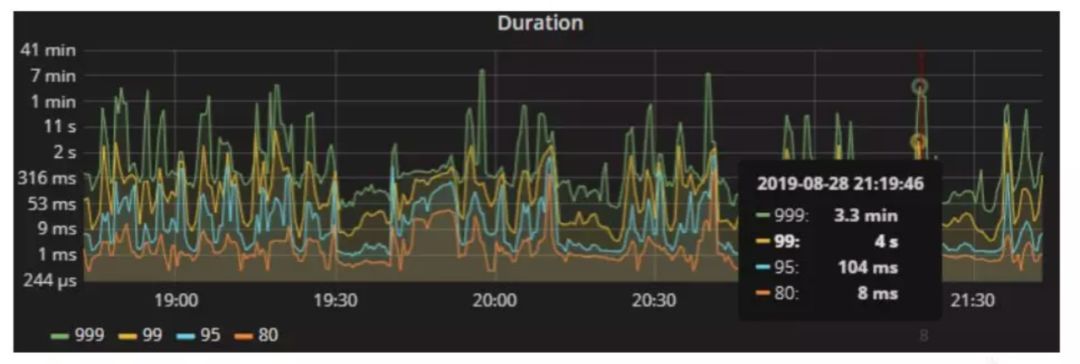 上图中,除了有部分整机信息聚合查询外耗时较长(主要使用 TiSpark 组件)外,可以看到 99% 的查询在 4S 内进行了返回,而 95% 的查询在 104ms 内返回,可以说性能是非常不错。目前表的数据行量主要处于百万到百亿行级别,而且索引数量并不多,因此能获得当前的性能可以说超出预期。