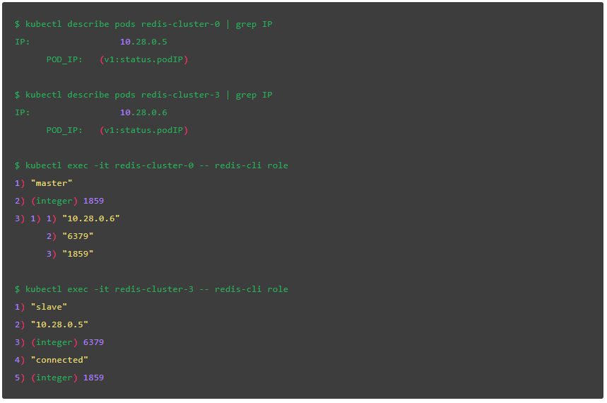 我们可以看到redis-cluster-0的IP发生了变化,那么集群是如何恢复的呢?