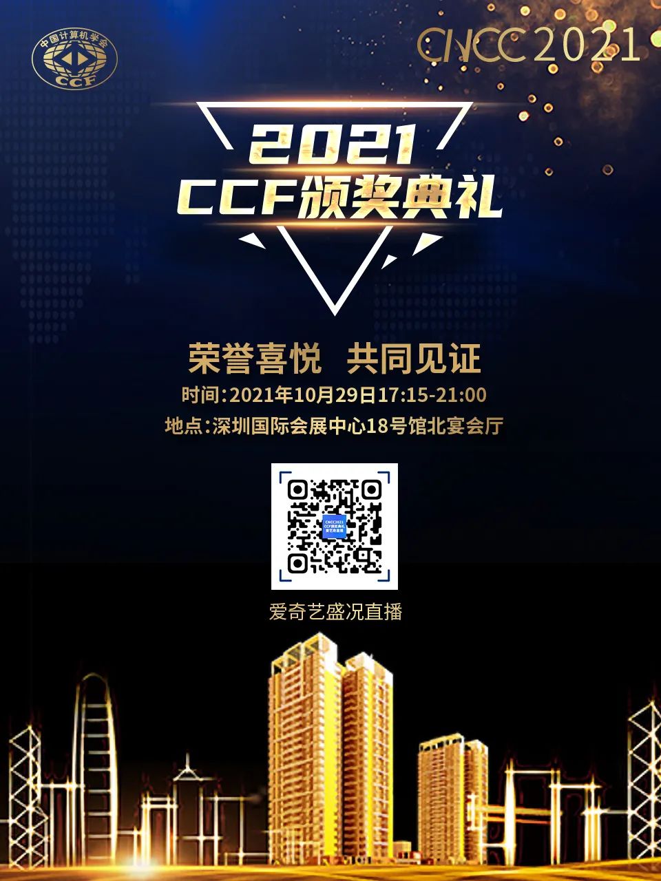 CCF将通过公众号和网站陆续发布本年度以上各奖项获奖公告,敬请随时关注。10月29日17:15记得准时观看爱奇艺直播,第一时间感受颁奖典礼的盛况。