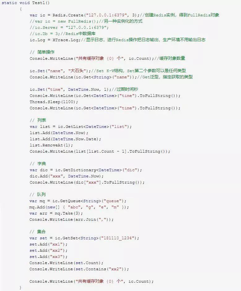 所以我们Redis的封装有两层,一层是NewLife.Core里面的Redis以及RedisClient;另一层就是NewLife.Redis。这里面的FullRedis是对Redis的实现了Redis的所有的高级功能。
