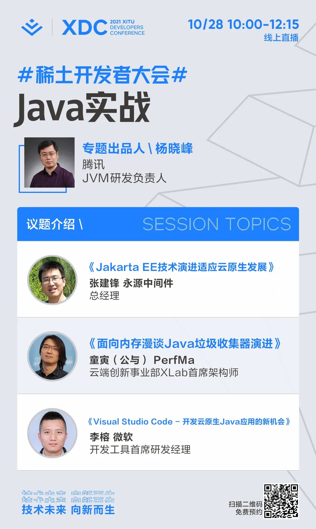 10月27、28日,稀土掘金技术社区主办的【稀土开发者大会】专门设置了「Java实战」和「云原生技术应用」专题,为Java语言从业者在云原生时代锚定自己的位置,也为Java未来的发展提出一些猜想和建议。