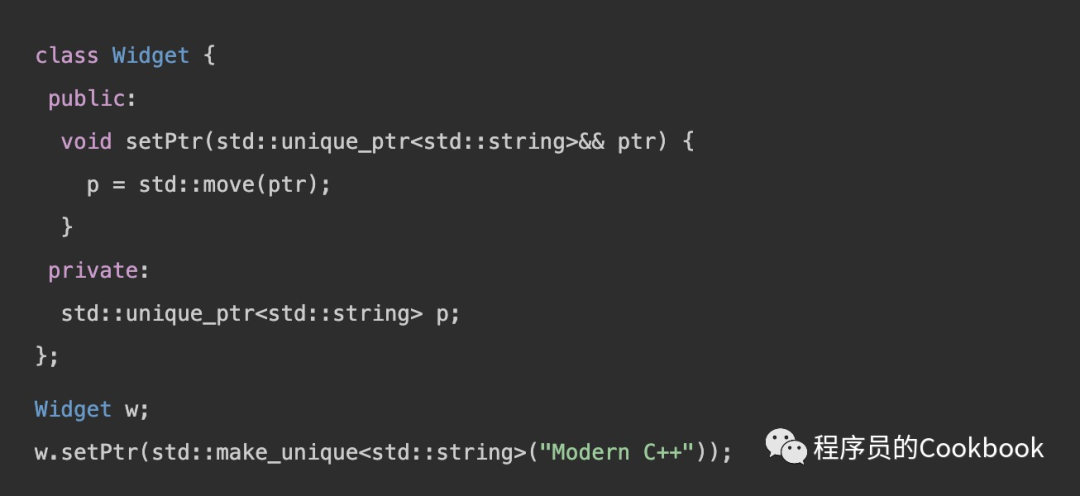 上面的代码总共需要花费1次move的开销,如果上面的代码只提供了值传递的方式的话,会导致隐式的调用移动赋值操作符(因为std::unique_ptr是move-only类型的,所以不会调用拷贝构造),然后内部再做一次move,所以总共需要花费2次move的开销。