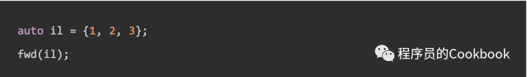上面的调用编译失败了,其原因是因为 {1,2,3}