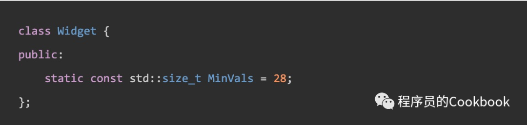 上面的MinVals只是声明了,但是还没有在类外进行定义,任何一个学过C++的人都知道静态成员变量需要在类外进行初始化,但是 staticconst