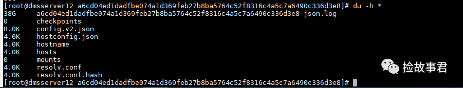 cd 到对应目录,执行rm -rf containeid-json.log文件。
