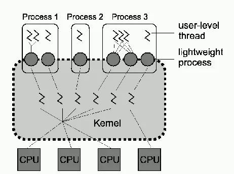 它使用管理线程来创建线程,并对每个进程所拥有的所有线程进行协调。这增加了创建和销毁线程所需要的开销。