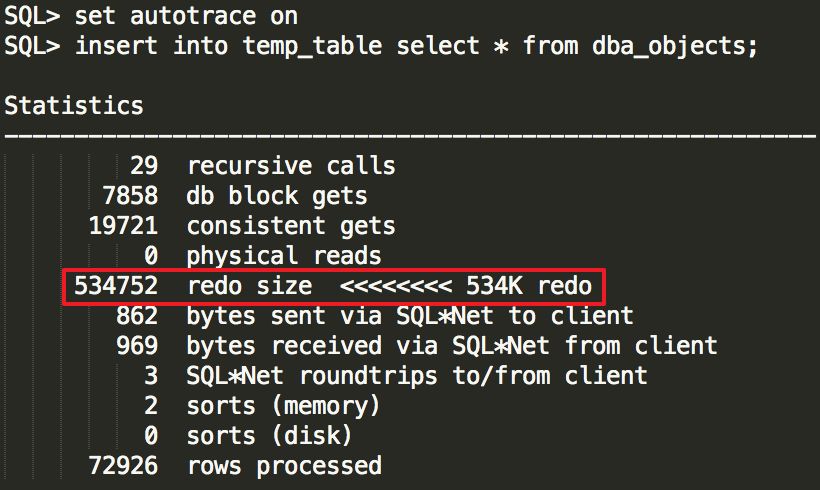 用户对全局临时表操作本身不会产生redo,但是undo操作会产生一部分redo。
