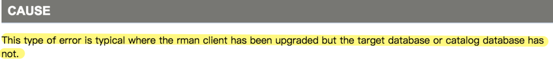 说白了,这类报错是由于RMAN各个组件的版本不兼容导致的。