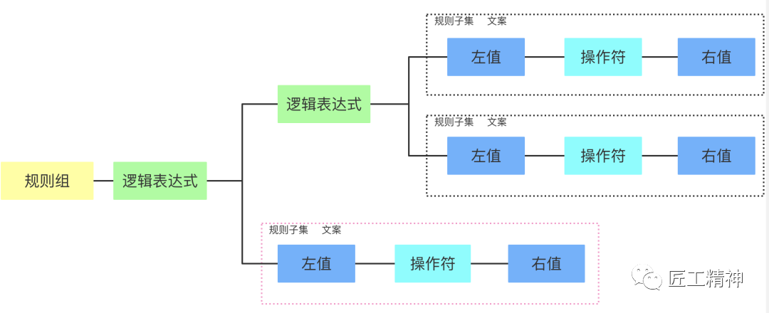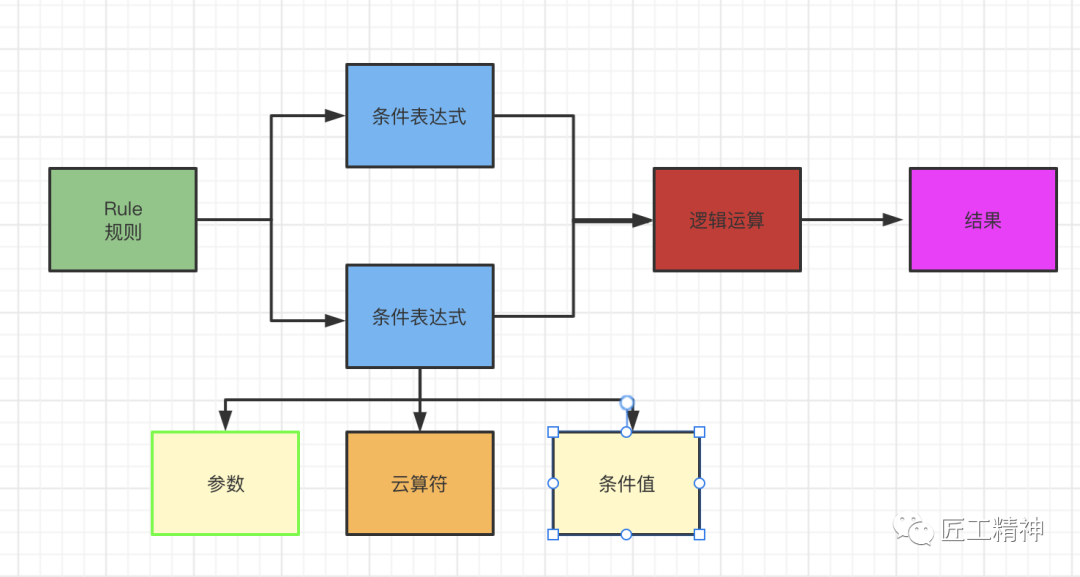 对上面的结构做下说明,workflow部分,可以理解为一个业务处理的流程,ruleSets部分,一系列的规则集合,conditionals部分,理解为条件网关的实现。
