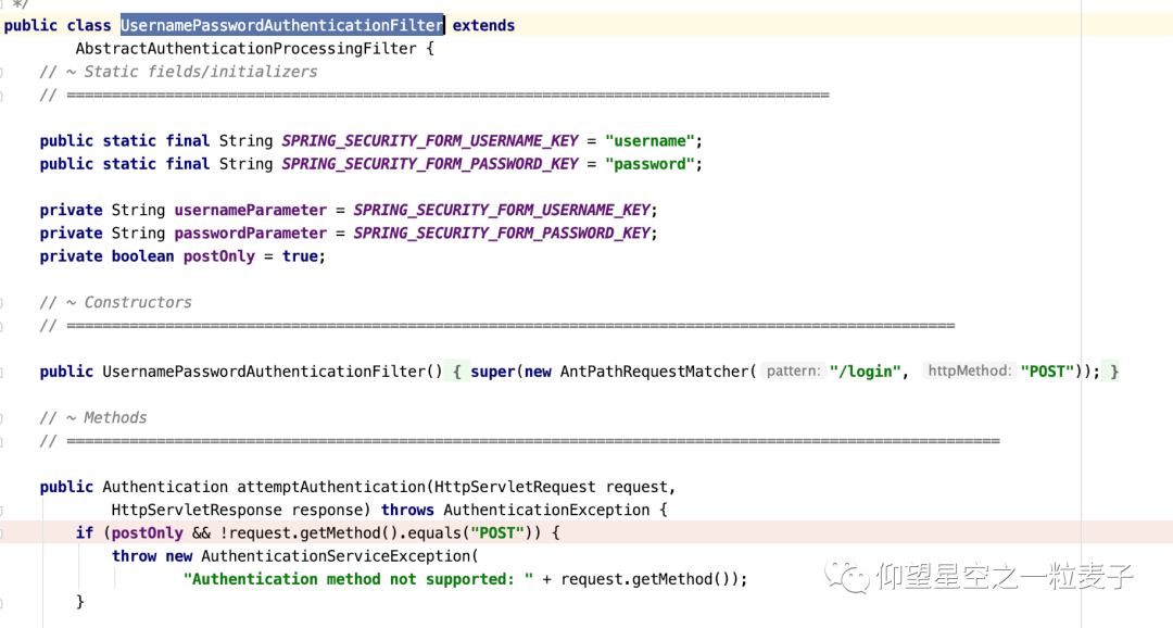 UsernamePasswordAuthenticationFilter类中方法: