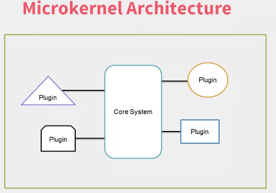 微内核架构(Microkernelarchitecture)模式也被称为插件架构(pluginarchitecture)模式。这是产品型应用程序的理想模式,由两部分组成:核心系统和插件模块。核心系统通常包含最小的业务逻辑,并确保能够加载、卸载和运行应用所需的插件。许多操作系统使用这种模式,因此得名微内核。 插件彼此独立,因此解偶。核心系统持有注册器,插件将自己注册其上,因此核心系统知道哪里可以找到它们以及如何运行它们。这种模式非常适合桌面应用程序,但是也可以在 Web 应用程序中使用。事实上,许多不同的架构模式可以作为整个系统的一个插件。对于产品型应用程序来说,如果我们想将新特性和功能及时加入系统,微内核架构是一种不错的选择。 - 敏捷性:由于插件可以独立开发并注册到核心系统,微内核架构具有很高的敏捷性。