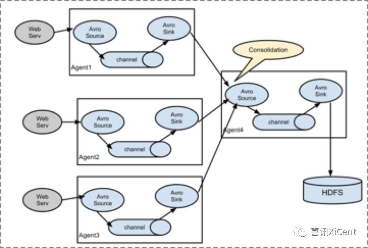 当我们有多个agent,多个agent之间的通信可以通过配置avro实现