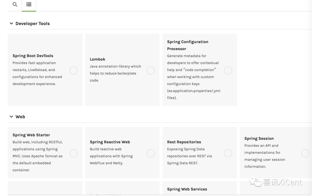 内容解释:这里备选的每一项技术都是Spring boot的starter pom,例如我们选中的Web,就是在Maven依赖spring-boot-starter-web。与这项技术相关的bean都会被自动配置。