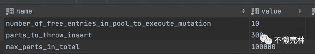 相信很多同学在刚开始使用 clickhouse 的时候都有遇到过该异常,出现异常的原因是因为 MergeTree 的 merge 的速度跟不上目录生成的速度, 数据目录越来越多就会抛出这个异常, 所以一般情况下遇到这个异常,降低一下插入频次就 ok 了,目前我们对流表分区都会强制`toYYYYMMDD`,意思就是1天生成1个分区,另外配置了流数据写入批次,间隔30000ms或者到达2000000条提交一次batch,每次写入ck就会生成一个part,之后再写入的数据会跟当前这个part去做合并,直至我们配置的阈值被触发