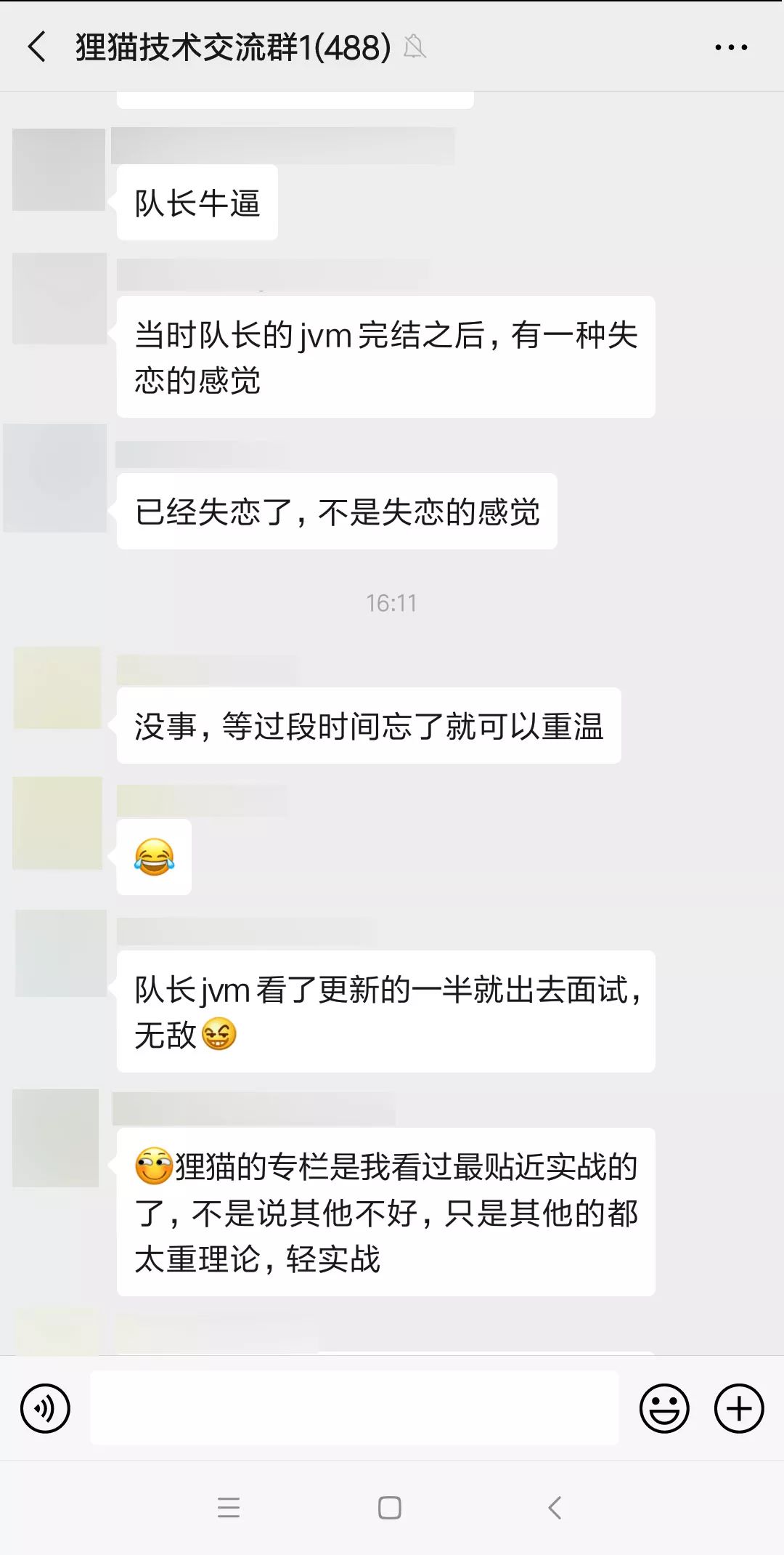JVM结束后,狸猫技术群的一些同学纷纷表示,每天追专栏已经成了一种习惯,专栏的结束让他们突然间,失恋了。。。