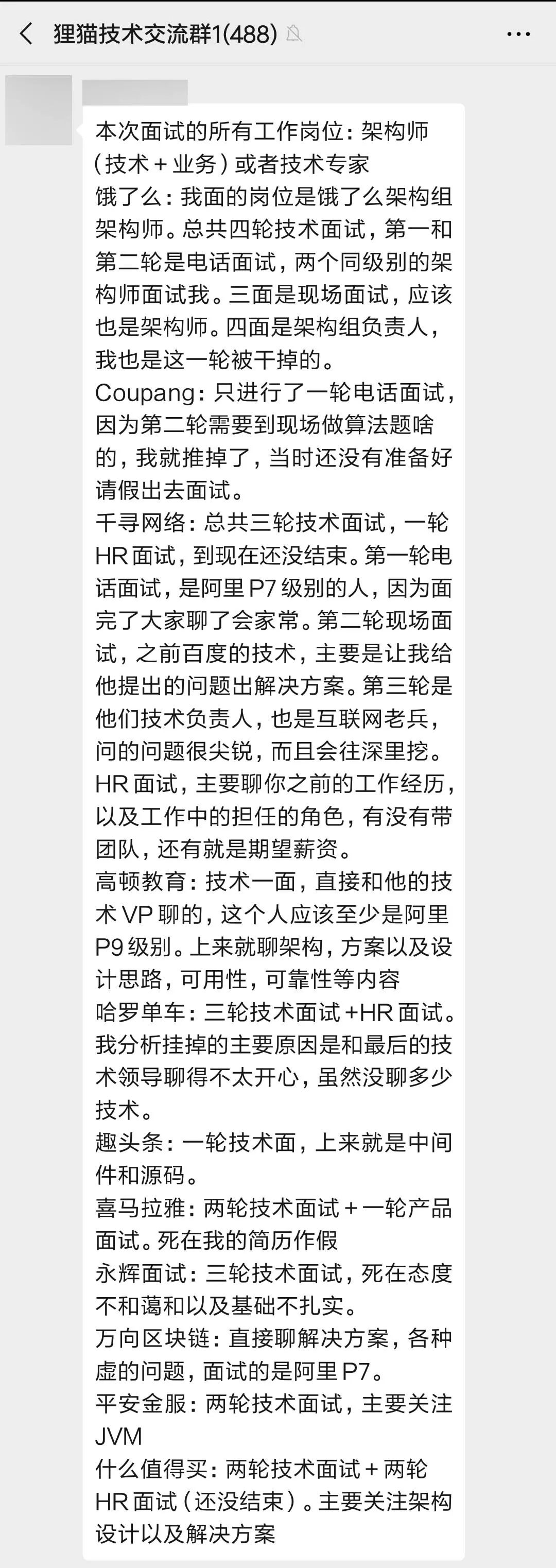 这是狸猫技术窝群友拿下某独角兽公司架构师offer后,在群里所做的面试分享:
