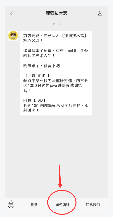 2、点击下图中菜单栏的知识店铺,扫描弹出的二维码,即可进入狸猫技术窝的知识店铺