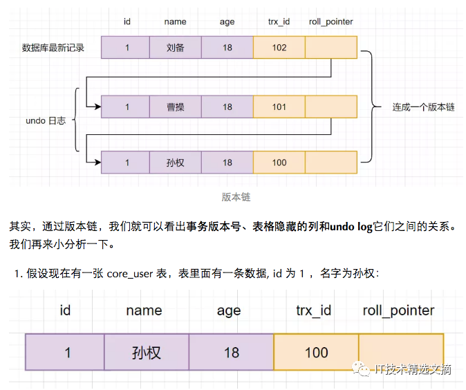 事务每次开启前,都会从数据库获得一个自增长的事务ID,可以从事务ID判断事务的执行先后顺序。这就是事务版本号。
