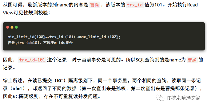Read View+ Undo Log读已提交(RC)隔离级别,存在不可重复读问题的分析历程