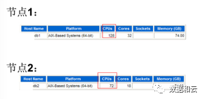 果然是CPU不对等,因此,在lms 多的节点上(本案例的节点1 ) 有更强的cache fusion 请求的能力疯狂的抛向LMS进程小的节点(节点2)时, 节点2 的负载过重无法对称的处理, 就会出现这个性能问题。