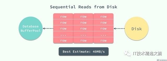 从磁盘读取数据并不是都要付出很大的代价,当数据库管理程序一次性从磁盘中顺序读取大量的数据时,读取的速度会异常的快,大概在 40MB/s 左右。