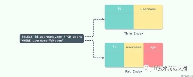 对于查询 SELECT id, username, age FROM users WHERE username=”draven” 来说,(id, username) 就是一个窄索引,因为该索引没有包含存在于 SQL 查询中的 age 列,而 (id, username, age) 就是该查询的一个宽索引了,它包含这个查询中所需要的全部数据列。