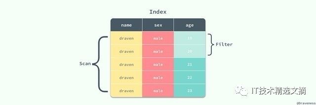 对于 users 表来说,sex=”male” 就不是一个好的过滤因子,它会选择整张表中一半的数据,所以在一般情况下我们最好不要使用 sex 列作为整个索引的第一列;而 name=”draven” 的使用就可以得到一个比较好的过滤因子了,它的使用能过滤整个数据表中 99.9% 的数据;当然我们也可以将这三个过滤进行组合,创建一个新的索引 (name, age, sex) 并同时使用这三列作为过滤条件: