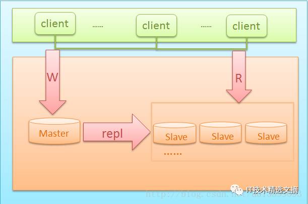 客户端通过Master对数据库进行写操作,slave端进行读操作,并可进行备份。Master出现问题后,可以手动将应用切换到slave端。