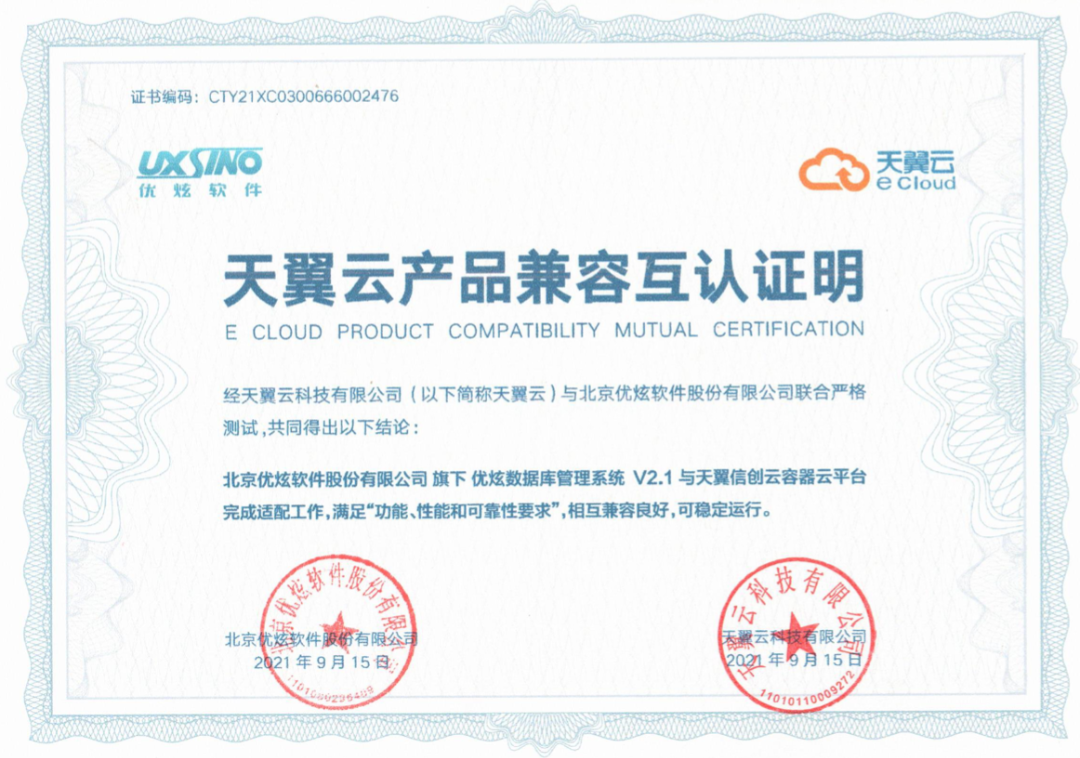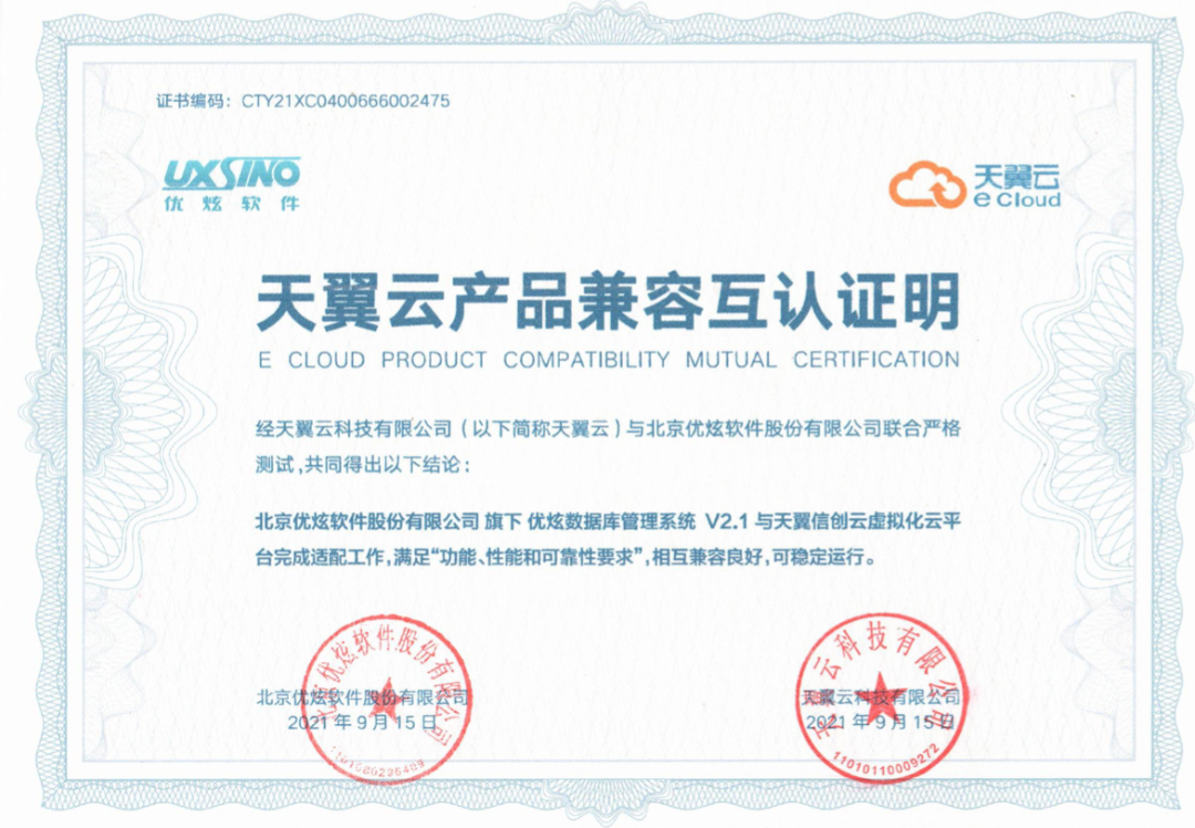 近日,北京优炫软件股份有限公司与天翼云科技有限公司完成产品兼容性适配互认证。本次测试是由优炫数据库管理系统UXDB与天翼信创云虚拟化云平台、天翼信创云容器云平台进行适配认证,结果显示,双方产品相互良好兼容,系统功能运行稳定,产品体验良好,满足了用户功能、性能和可靠性要求。双方将在国家信创产业的背景下,为推动行业良性发展,加速数字化转型提供安全保障。