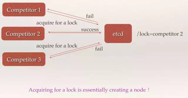 因为etcd使用Raft算法保持了数据的强一致性,某次操作存储到集群中的值必然是全局一致的,所以很容易实现分布式锁。锁服务有两种使用方式,一是保持独占,二是控制时序。
