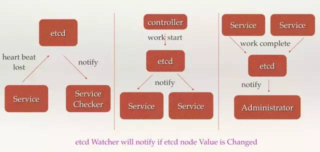 一种注册服务和监控服务健康状态的机制:用户可以在etcd中注册服务,并且对注册的服务设置key TTL,定时保持服务的心跳以达到监控健康状态的效果。【能够完成新的应用或服务的注册添加进来,同样也能对现有的服务是否可用进行监控】