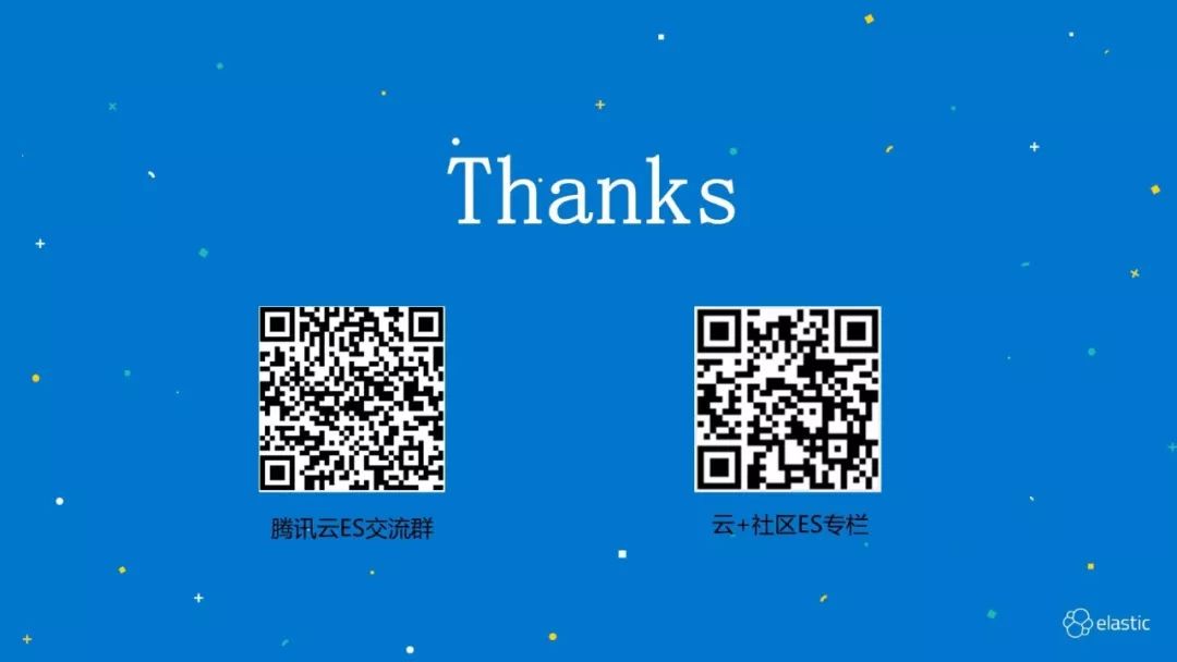 欢迎大家加入腾讯云 ES 交流群,或者关注我们在云+社区上的ES专栏。我们也在持续的进行招聘,欢迎志同道合的同学加入我们,感兴趣的同学可以投递简历至:johngqjiang@tencent.com。