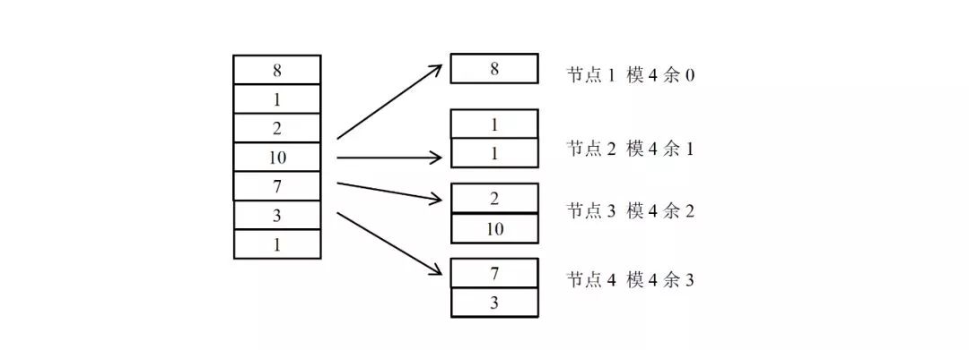 对于哈希分数据的方式,每个哈希分桶后的余数可以作为一个数据段,为了控制数据段的大小,常常使得分桶个数大于集群规模。一旦将数据分为数据段,则可以以数据段为单位管理副本,从而副本与机器不再硬相关,每台机器都可以负责一定数据段的副本。